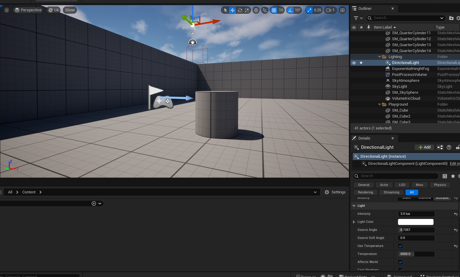 자 조명 밝기를 조절해 볼게요 디테일 패널에서 Intensity 지금 3으로 되어 있죠 1로 바꾸면 어떻게 될까요?