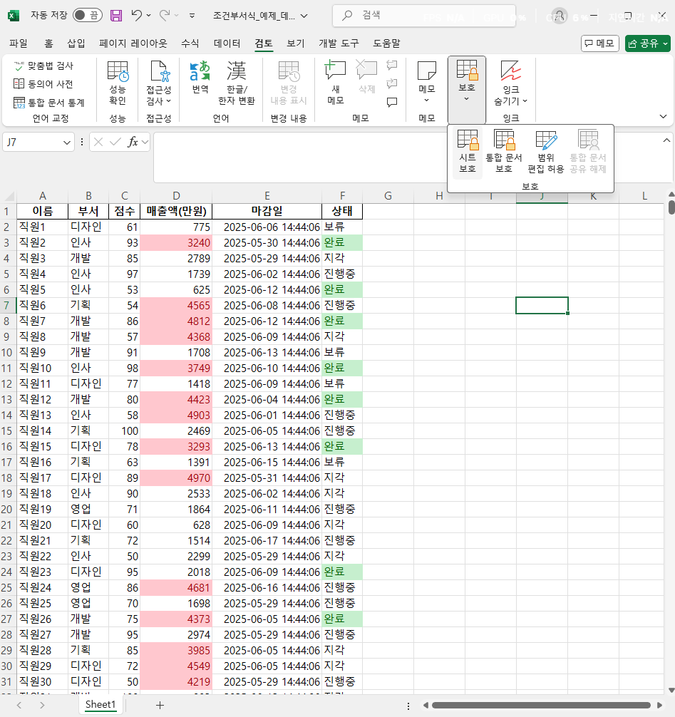 이런 문제를 예방하기 위해서 '시트 보호' 기능이 반드시 필요합니다.