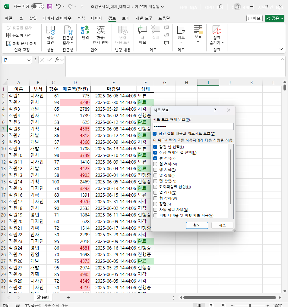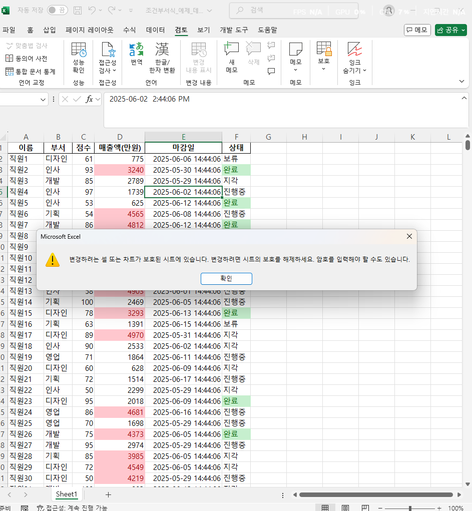 지금 시트가 제대로 보호 중인 게 보이시죠?