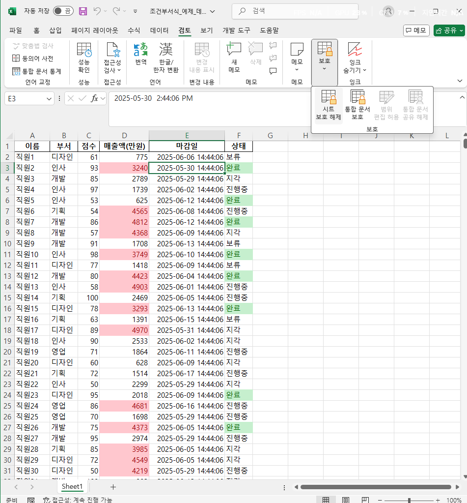 이런 문제를 예방하기 위해서 '시트 보호' 기능이 반드시 필요합니다.