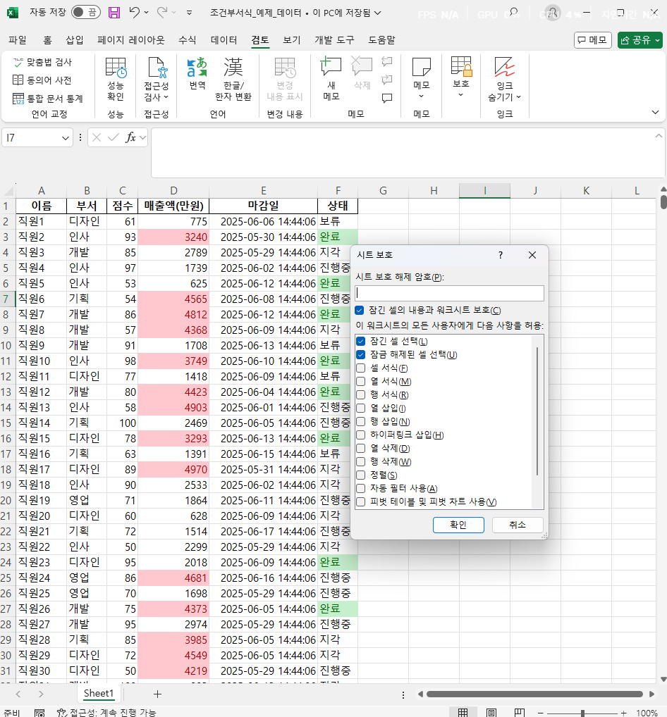 지금 시트가 제대로 보호 중인 게 보이시죠?