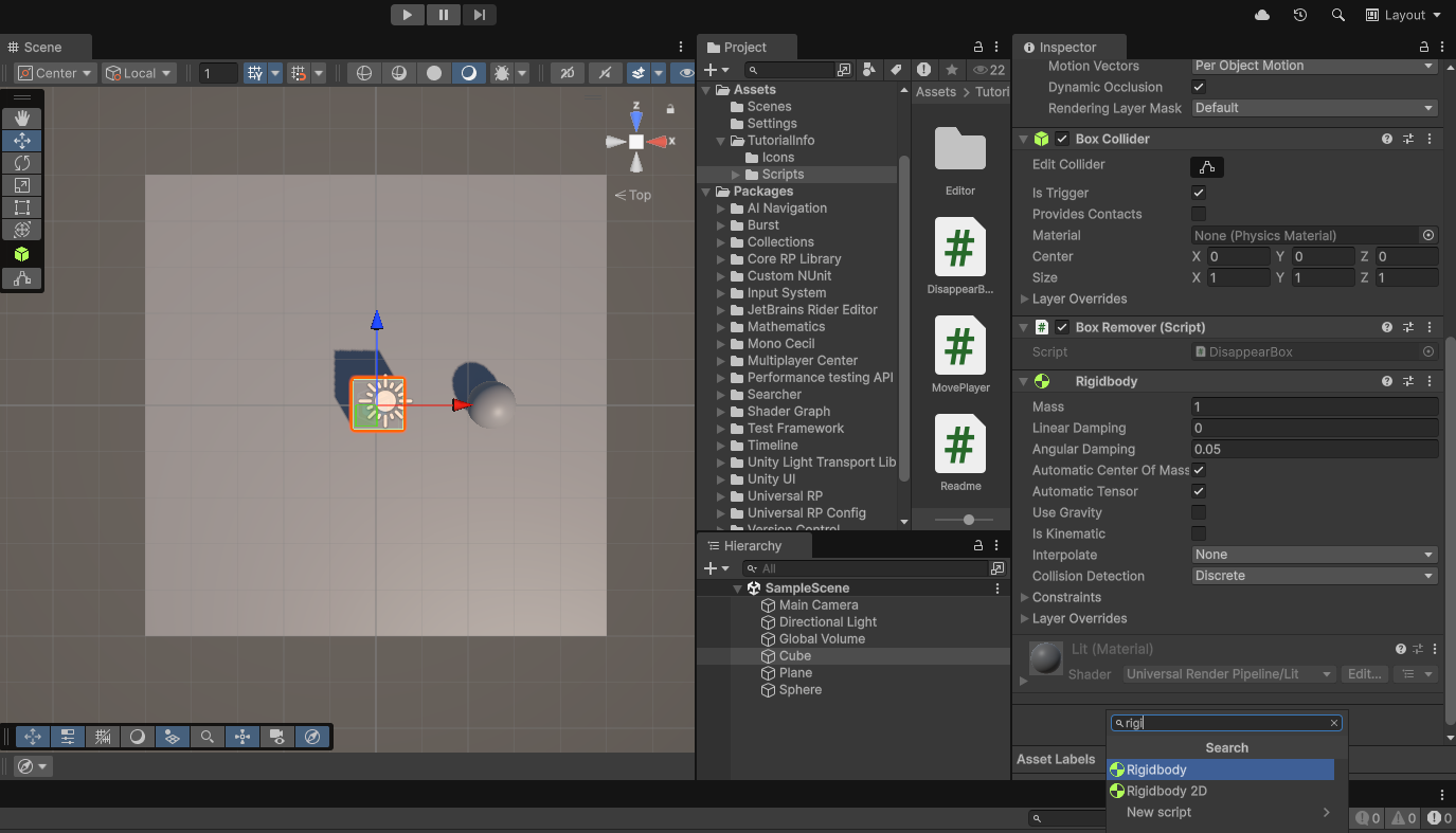 여기서 Rigidbody를 추가하면 중력, 속도, 충돌과 같은 물리 효과를 자동으로 적용할 수 있습니다.