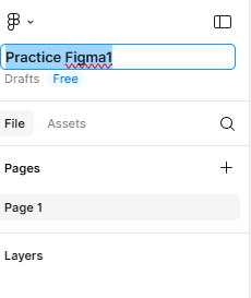 자 그럼 이름을 클릭해서 이름을 변경해 주세요 저는 "Practice Figma1"로 설정했습니다.