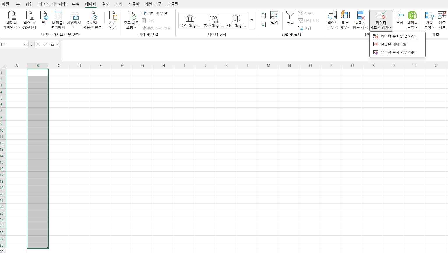 자 먼저 범위를 설정하고 데이터 유효성 검사를 클릭해 주세요