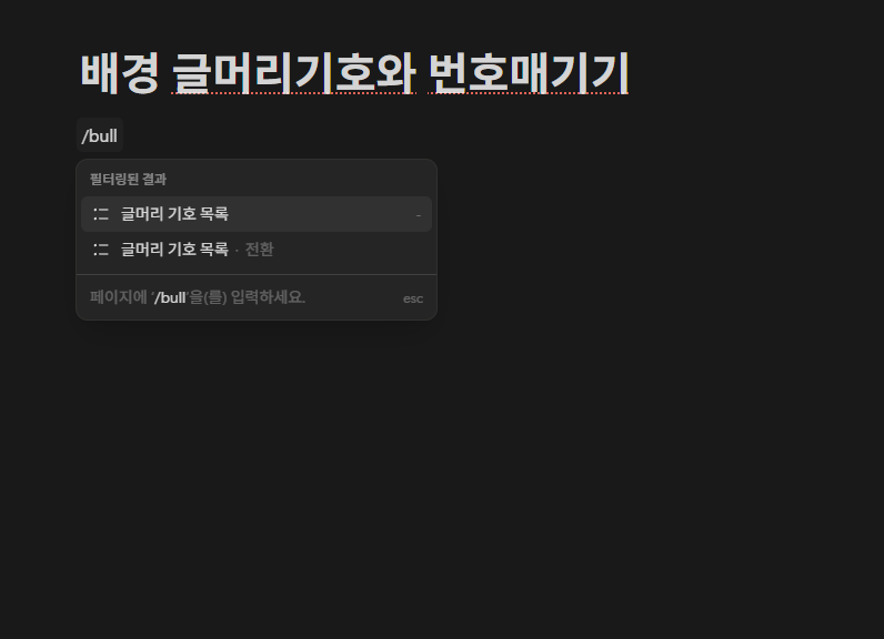 - 노션에서는 기본적인 동그라미 글머리기호와 숫자만 지원합니다.