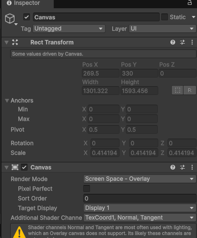 - Sorting Order로 캔버스 우선순위를 조정할 수 있습니다.