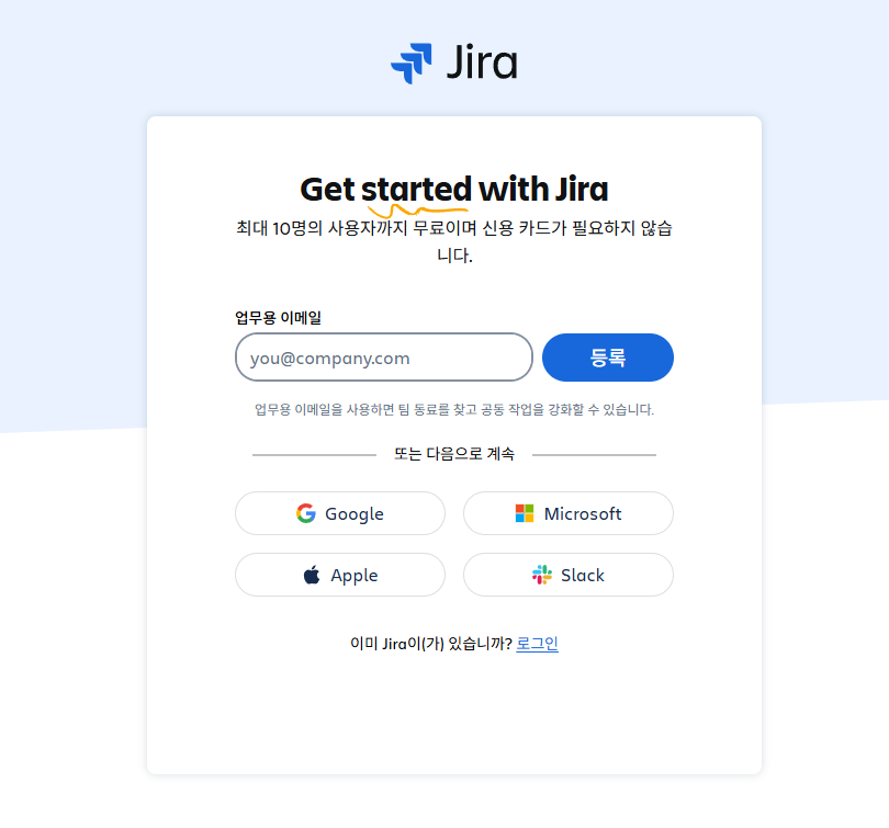 - Atlassian 사이트에서 이메일만 있으면 회원 가입은 가능합니다.