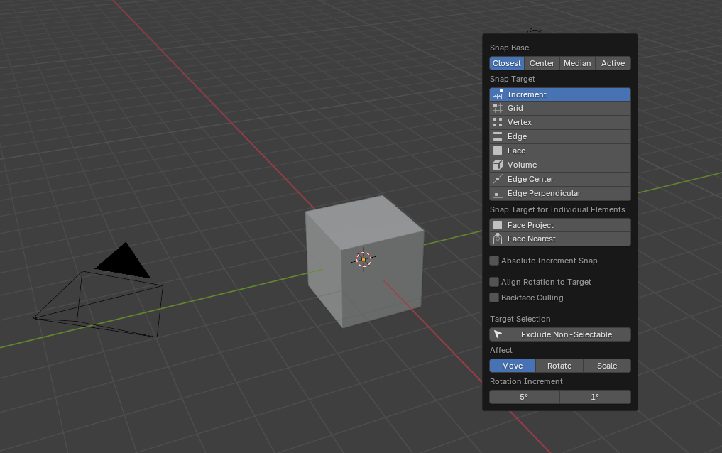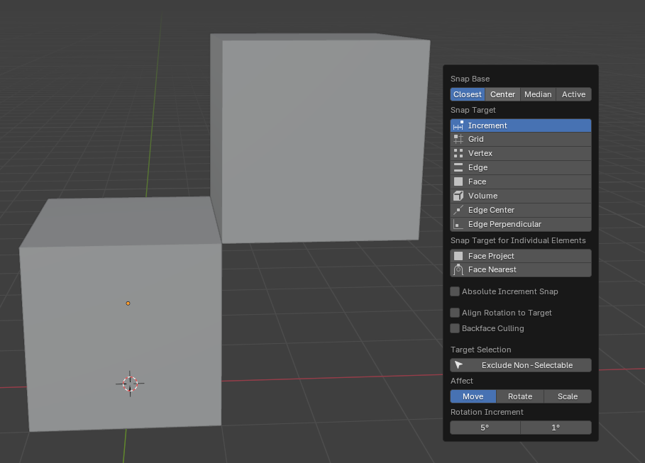 - 오브젝트가 서로 멀어진 상태에서 G키를 눌러 이동시킬 때 옆에 착! 붙도록 위치를 움직일 수 있습니다.