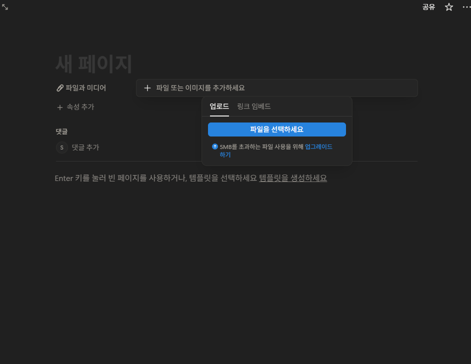 - 직접 업로드: 노션에 사진 파일을 드래그 앤 드롭
