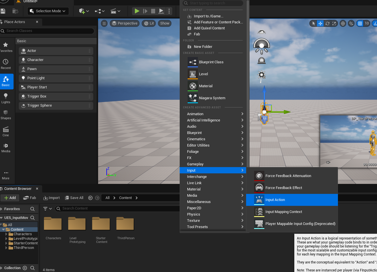 - Content/Input 우클릭 후 Input 액션을 선택해 주세요