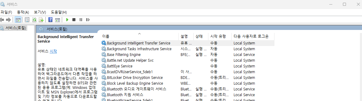 - services.msc 입력