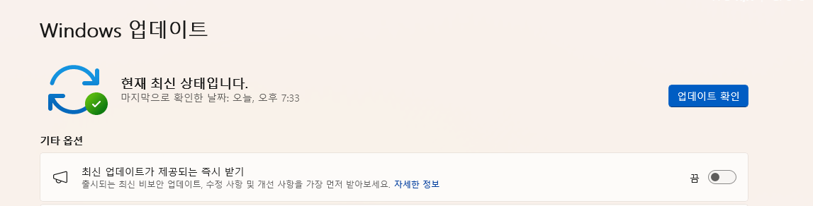 - 설정 → Windows 업데이트